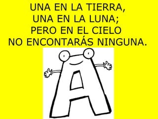 Este documento contiene varias adivinanzas en forma de pistas. La primera habla de letras que se encuentran en la tierra y la luna pero no en el cielo. La segunda se refiere a algo derecho con un mosquito encima. La tercera dice que se verá cualquier día menos domingo. Y la cuarta menciona algo que lleva el burro a cuestas en un baúl y que siempre se tiene pero nunca se tuvo.