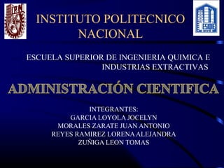 Este documento presenta un resumen de los principales conceptos y teorías de la administración científica. Describe las contribuciones de pioneros como Taylor, Gantt, los Gilbreth, Fayol y Mintzberg. Se enfoca en temas como estudios de tiempos y movimientos, selección de personal, incentivos, especialización, gráficas de Gantt y principios como la división del trabajo. El objetivo final era mejorar la eficiencia y productividad en las organizaciones aplicando un enfoque científico y racional a la administración.
