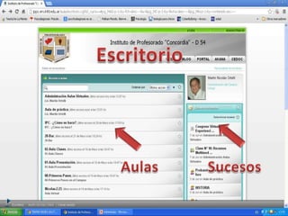 El documento describe un menú desplegable de aulas que permite a los usuarios abrir un menú contextual al hacer clic con el botón derecho del mouse.