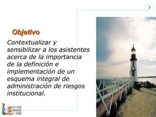 El documento aborda la importancia de la administración de riesgos en entidades públicas, destacando la necesidad de un esquema integral para su identificación y control. Se mencionan normativas y modelos de gestión aplicables, así como etapas para la administración de riesgos que incluyen la identificación, análisis y tratamiento. Además, se presentan políticas para abordar los riesgos, priorizando acciones en función de su impacto y probabilidad de ocurrencia.