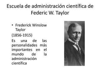 El documento resume las principales escuelas y teorías de la administración gerencial. Incluye las contribuciones de Taylor con la administración científica, Fayol con la administración clásica, Weber con la burocracia, Mayo con las relaciones humanas, McGregor con la Teoría X y Y, Maslow con la pirámide de necesidades y Herzberg con los factores higiénicos y motivacionales. Explica los conceptos y conclusiones clave de cada autor o escuela.