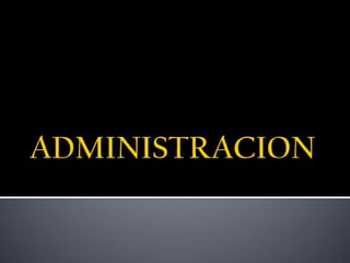 La administración es un proceso que coordina los recursos de un grupo social para lograr sus objetivos de manera eficiente y productiva. Es universal y se aplica en diferentes tipos de organizaciones como empresas, hospitales y escuelas. La administración es un instrumento flexible para alcanzar fines previamente establecidos y no un fin en sí misma. El uso de métodos científicos de administración permite que las organizaciones logren sus objetivos económicos y de otra índole.
