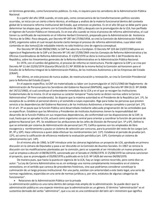 1) El documento describe la evolución histórica de la administración pública en Venezuela desde 1958 hasta la entrada en vigencia de la Ley de Carrera Administrativa en 1970. Inicialmente se creó la Comisión de Administración Pública en 1958 para iniciar un proceso de reforma administrativa. En 1960 se promulgó el primer reglamento de administración de personal. Finalmente, la Ley de Carrera Administrativa fue sancionada en 1970.