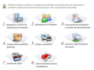 La logística es la parte del proceso de la cadena de suministro que planea, lleva a cabo y controla el flujo y almacenamiento eficientes y efectivos de bienes y servicios, así como la información relacionada, desde el punto de origen hasta el punto de consumo con el fin de satisfacer los requerimientos del cliente. La administración integral de la cadena de suministro, la capacidad de respuesta rápida y los aspectos financieros son las principales fuerzas impulsoras de la logística moderna.