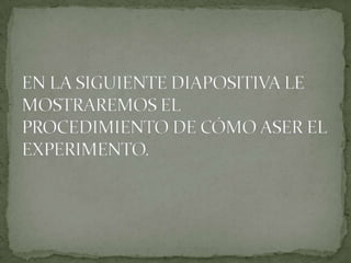 El documento describe la extracción de ADN de una muestra vegetal. Explica que el ADN contiene la información genética de las células y está formado por unidades ordenadas en una secuencia. También describe los pasos del procedimiento de extracción, que incluye romper las células con un detergente y disolver el ADN en una disolución tampón. El objetivo es emplear una técnica de laboratorio fácil para observar el ADN contenido en la célula.