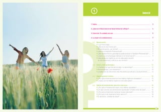 El documento aborda la salud y la higiene íntima de las mujeres durante la adolescencia, incluyendo aspectos como la menstruación, consultas ginecológicas y hábitos saludables. Destaca la importancia de la educación sobre el ciclo menstrual, métodos anticonceptivos y salud íntima para mejorar la calidad de vida de las jóvenes. A través de un estudio realizado por SEGO y Ausonia, se proporciona información sobre las necesidades y preocupaciones de las adolescentes en estas áreas.