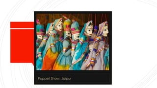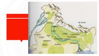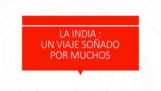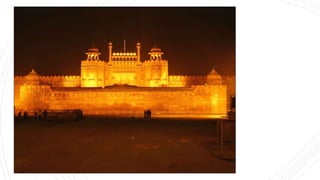 El documento proporciona información sobre la ciudad de Delhi en la India. Delhi ha sido la capital de la India durante siglos y contiene importantes sitios históricos como el Fuerte Rojo, la mezquita Jama Masjid y el mercado Chandni Chowk. El documento también describe varios monumentos y lugares de interés en la nueva zona de la ciudad planificada de Nueva Delhi, como la Puerta de la India, el Raj Ghat y el complejo gubernamental. Delhi es una ciudad histórica con una rica herencia arquitectónica que refleja las diferentes