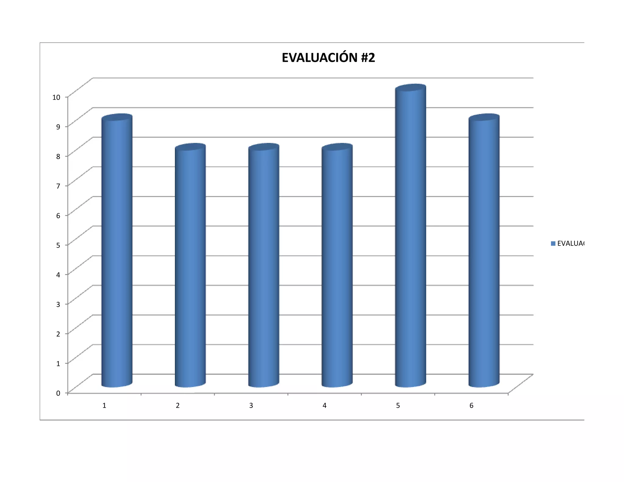 El documento presenta los resultados de evaluaciones y calificaciones de un estudiante en 6 materias. Muestra gráficas de las calificaciones obtenidas en 3 evaluaciones distintas, el promedio general, y las calificaciones máxima y mínima. Adicionalmente, presenta una tabla con los datos numéricos del estudiante.