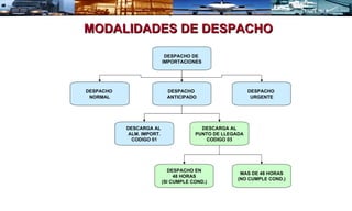 1. El documento describe el Sistema Anticipado de Despacho Aduanero, el cual permite el despacho de importaciones en 48 horas si se cumplen ciertas condiciones.