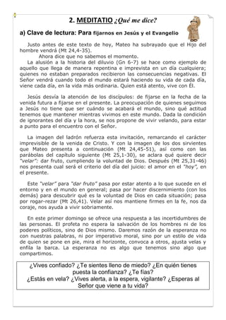 Este resumen describe el segundo domingo de Adviento. Juan Bautista predica en el desierto llamando a la conversión porque el Reino de los Cielos está cerca. Juan bautiza con agua a la gente que confiesa sus pecados, mientras que Jesús vendrá a bautizar con el Espíritu Santo y el fuego. Juan advierte a los fariseos y saduceos que no basta con ser descendientes de Abraham, sino que se requiere dar frutos de conversión.