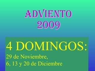 Este documento presenta una guía sobre el significado y las celebraciones del Adviento. Explica que el Adviento conmemora la venida de Cristo de maneras pasadas, presentes y futuras. Describe las cuatro semanas del Adviento y sus temas, así como símbolos como la corona de Adviento y la Virgen María. Resalta que el Adviento es un tiempo para prepararse espiritualmente para la venida de Cristo a través de la espera, conversión y alegría.