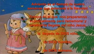 Este documento describe el significado del Adviento como un tiempo de espera y preparación espiritual para celebrar el nacimiento de Jesús. Es un período para reflexionar sobre el sentido de la vida y la fe, esperando renovación personal a través de la promesa de Dios. También es un tiempo para ofrecer hospitalidad y recibir nuevos valores en la vida.