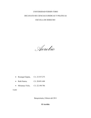 El documento resume la historia y desarrollo del aeróbic como actividad física y deporte competitivo. Comenzó en los años 1970 como una actividad para mantener la forma física de las esposas de militares estadounidenses y se ha convertido en uno de los deportes más practicados en el mundo. El aeróbic competitivo se organiza a través de federaciones internacionales y tiene cuatro categorías: individual masculino y femenino, parejas y tríos.