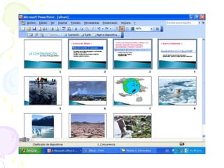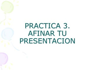 Este documento proporciona instrucciones sobre cómo reorganizar, eliminar, ocultar y modificar diapositivas en PowerPoint. Explica cómo mover diapositivas, eliminarlas, ocultarlas, cambiar el color de fondo y agregar diapositivas de resumen o de otra presentación. También describe cómo agregar comentarios a las diapositivas.