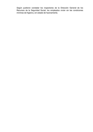 La AFIP denunció al dueño y encargado de una finca por explotar a 7 trabajadores en condiciones infrahumanas. Los trabajadores, en su mayoría paraguayos indocumentados, vivían en condiciones de hacinamiento y sin servicios básicos. El juez ordenó la detención de los propietarios por trata de personas.