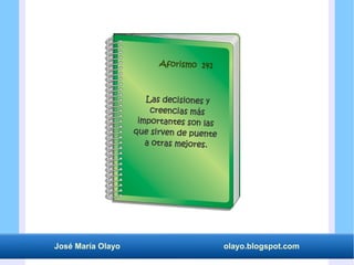 Este documento contiene 170 aforismos sobre diversidad funcional escritos por José María Olayo Martínez. Cada aforismo presenta una breve reflexión sobre temas como la empatía, el victimismo, la inclusión social, la discapacidad y las relaciones humanas. Los aforismos ofrecen pensamientos concisos destinados a promover una mayor comprensión y respeto hacia la diversidad funcional.