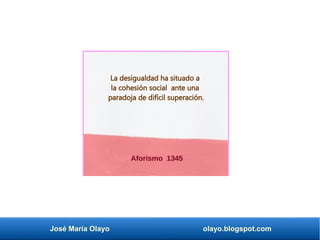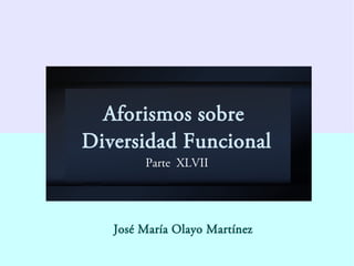 Este documento contiene 1373 aforismos de José María Olayo Martínez sobre diversidad funcional. Los aforismos tratan temas como la desigualdad y la cohesión social, la historia de la discapacidad, la autoconfianza, la empatía, la autodeterminación, la exclusión social, la solidaridad y el paternalismo.