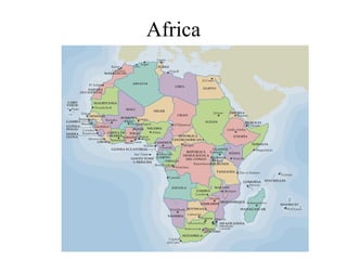 El documento describe las condiciones de vida en África, incluyendo que a pesar de la pobreza la gente es feliz, los niños trabajan desde pequeños y viven en casas hechas a mano de barro, madera y paja, las mujeres pasan gran parte del día buscando agua, hay desnutrición infantil debido a la sequía y falta de lluvias, y existen maravillas auténticas como la gente indígena.