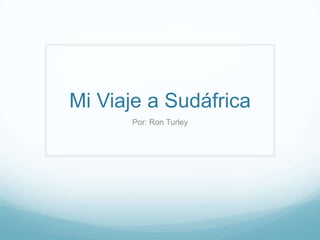 Ron Turley visitó Sudáfrica y exploró varias regiones, incluyendo safaris para ver la vida silvestre y ecosistemas. También experimentó la cultura y comida de varias ciudades como Johannesburgo y La Ciudad del Cabo. En general, tuvo una experiencia memorable al conocer esta parte de África.