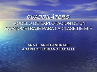 El documento presenta un análisis de un cortometraje titulado "Cuadrilátero" que trata sobre cuatro personajes sin nombre que se aman sin ser correspondidos. Se discuten las posibles historias de los personajes y sus pensamientos a lo largo de la película basados en pequeñas pistas sobre sus sentimientos. El documento propone varias preguntas para reflexionar sobre los significados y mensajes subyacentes en la película.