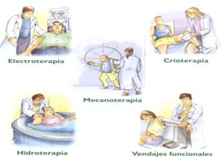 Los agentes físicos son medios utilizados en fisioterapia para tratamientos y incluyen la termoterapia (calor), crioterapia (frío), hidroterapia (agua) y fototerapia (luz). Cada uno tiene efectos fisiológicos específicos y se usan para indicaciones como lesiones, inflamaciones, contracturas y más, siempre siguiendo contraindicaciones y normas de aplicación.
