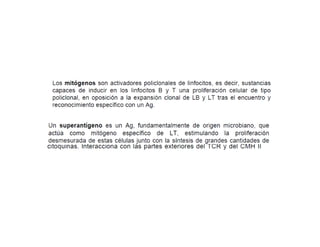 Este documento compara la inmunogenicidad y la antigenicidad. La inmunogenicidad se refiere a la capacidad de inducir una respuesta inmunitaria, mientras que la antigenicidad se refiere a la capacidad de unirse a anticuerpos. También describe brevemente las moléculas CMH I y II y su papel en la presentación de antígenos a linfocitos T.