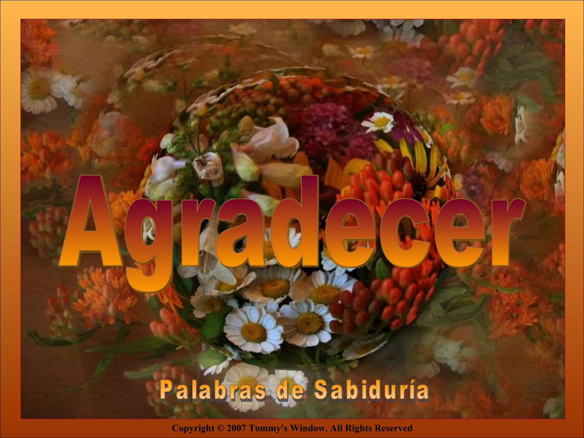 El documento contiene varias citas que enfatizan la importancia de vivir con gratitud y apreciar las bendiciones recibidas. Algunas de las ideas principales son que debemos dar gracias siempre por las bendiciones presentes y futuras, que es más importante sentir gratitud en el corazón que tener mucho en el bolsillo, y que aprender a estar contento con nuestra situación, como lo hizo Pablo, es una lección importante.