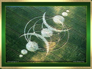 Los agroglifos son diseños inexplicables que aparecen en campos de cultivo, registrados desde los años setenta, fascinando a los investigadores por su geometría sagrada y asociaciones culturales. Estos patrones, que no dañan las cosechas, han mostrado efectos inusuales en campos electromagnéticos y han suscitado diversas teorías sobre su origen, desde fenómenos naturales hasta intervenciones extraterrestres o humanas. Además, algunos agroglifos se han asociado con predicciones de eventos astronómicos significativos.
