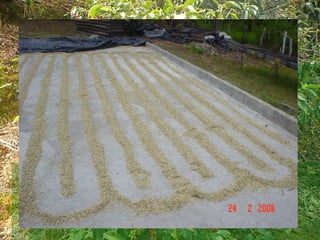 El documento compara el proceso de producción de café orgánico versus café tradicional. Describe los objetivos, generalidades, plagas, fertilización, cosecha y certificaciones de cada método. El café orgánico usa técnicas de bajo impacto ambiental sin agroquímicos, mientras que el café tradicional usa fertilizantes y plaguicidas químicos. Ambos métodos son aceptados en el mercado pero el orgánico tiene un mercado más pequeño y en desarrollo.