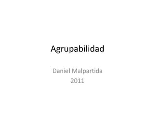 Este documento describe varios factores que pueden ser desfavorables o favorables para la agrupabilidad de pacientes en terapia grupal. Entre los factores desfavorables se encuentran ciertos diagnósticos como psicosis e intensos sentimientos de soledad, así como factores situacionales como crisis recientes o la incapacidad de asistir regularmente. Los factores favorables incluyen diagnósticos como neurosis obsesiva o histérica, así como ciertas personalidades como esquizoide o infantil. También se discuten los criterios que debe cumplir un