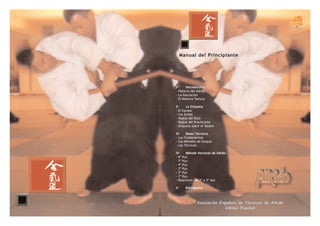 El manual presenta las bases del Aikido en 5 secciones. La sección I introduce la historia y filosofía del Aikido. La sección II describe la etiqueta en el dojo. La sección III explica los fundamentos técnicos. La sección IV detalla el sistema de grados. La sección V lista la bibliografía recomendada. El manual provee una guía completa para principiantes en el estudio del Aikido.