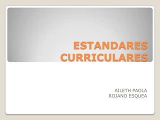Este documento define los estándares curriculares, lineamientos curriculares y sus diferencias. Los estándares curriculares son criterios mínimos establecidos por el Ministerio de Educación para la formación integral de los estudiantes y se enfocan en áreas como matemáticas, lenguaje y ciencias. Los lineamientos curriculares son directrices generales sobre el currículo, mientras que los estándares son más precisos y específicos para cada grado y desempeño. Ambos buscan mejorar la calidad educativa.