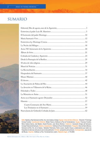 El documento presenta una entrevista al Padre Luis Miguel Alaminos Montealegre, el nuevo Ministro Provincial de la Orden de la Santísima Trinidad. En la entrevista, el Padre Alaminos habla sobre los retos de su nuevo cargo como Ministro Provincial y la necesidad de una espiritualidad que transforme e inspire a las personas tanto en la Iglesia como en la sociedad. También comenta sobre la importancia histórica del Santuario de Nuestra Señora de la Cabeza para la Orden de la Santísima Trinidad.