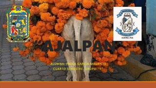 Este documento describe las costumbres y tradiciones de Ajalpan, México. Incluye información sobre celebraciones como el Día de Muertos, la Semana Santa y ferias. También describe los trajes típicos y platillos locales como el mole de guajolote y el atole.
