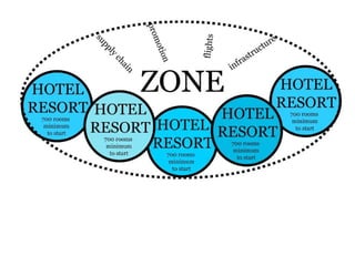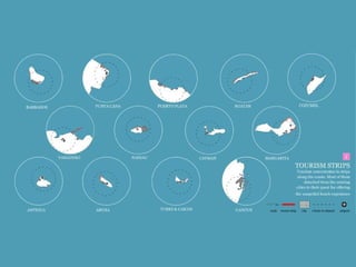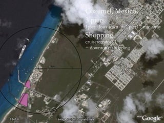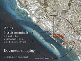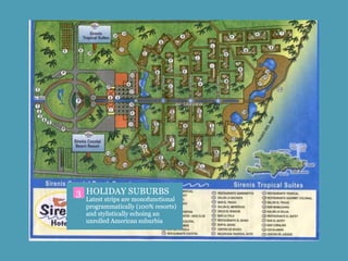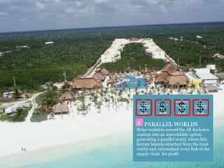 El documento discute el impacto del turismo de cruceros y los complejos hoteleros todo incluido en el Caribe. En las décadas de 1970 y 1980, surgieron áreas de desarrollo turístico patrocinadas por gobiernos y organizaciones internacionales, como Cancún y Punta Cana. Desde entonces, la industria hotelera se ha expandido rápidamente y ha ganado un gran poder en la región, mientras que la contaminación y otros problemas ambientales y sociales también han aumentado.