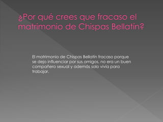 El matrimonio de Chispas Bellatín fracasó debido a que se dejó influenciar por sus amigos, no era un buen compañero sexual y solo vivía para trabajar. Mario Vargas Llosa disfrutaba revisando el texto de "Al pie del Támesis" y viendo cómo las palabras cobraban nuevo significado a través de la actuación de los personajes. La obra está íntimamente ligada a la novela "Los Cachorros" ya que en ambas los protagonistas sufren una experiencia sexual que los marca de por vida.