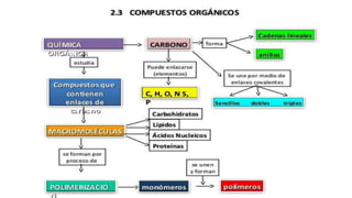 Este documento presenta un resumen de los diferentes tipos de química, incluyendo química orgánica, química analítica, química física, química inorgánica y bioquímica. Define cada una brevemente, señalando que la química orgánica estudia los compuestos de carbono, la química analítica analiza la composición química de muestras, la química física estudia las propiedades físicas de la materia, la química in