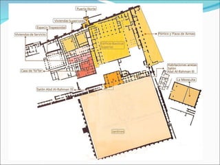 El documento describe el nacimiento y expansión del Islam. 1) Mahoma fundó el Islam en la Península Arábica en el siglo VII. 2) Bajo los califas, el Islam se expandió rápidamente por el norte de África y la Península Ibérica. 3) El califato de Córdoba alcanzó su apogeo en el siglo X bajo Abderramán III, pero luego entró en declive y los reinos de taifas emergieron.