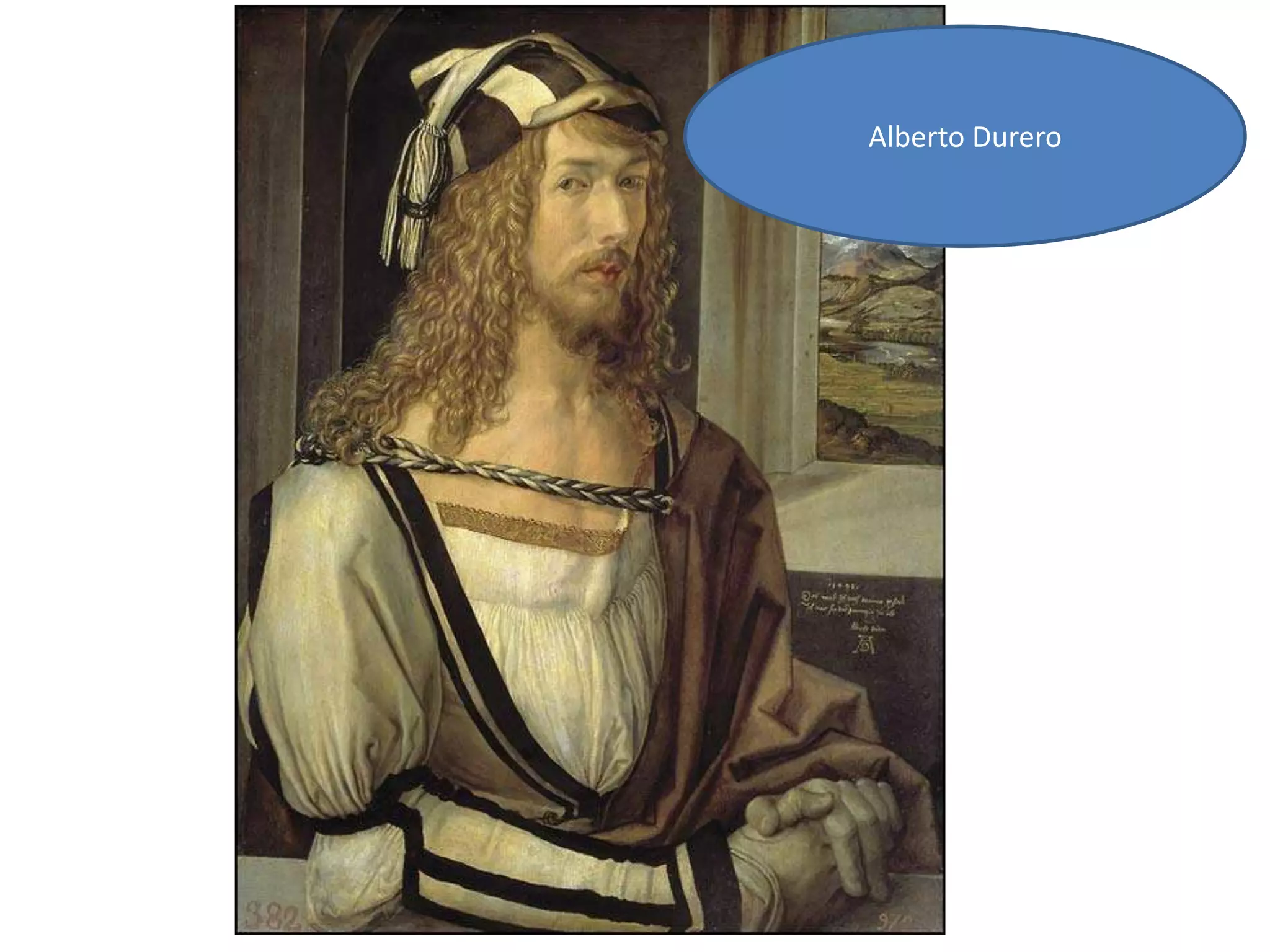 Alberto Durero fue un artista alemán del siglo XVI conocido por sus grabados, pinturas y tratados de arte. Combinó las tradiciones artísticas flamencas, alemanas e italianas. Fue un artista muy versátil que practicó el dibujo, la pintura, la acuarela y revolucionó las técnicas del grabado. También destacó por sus retratos y por plasmar sus ideas sobre arte y proporción humana en varios tratados.