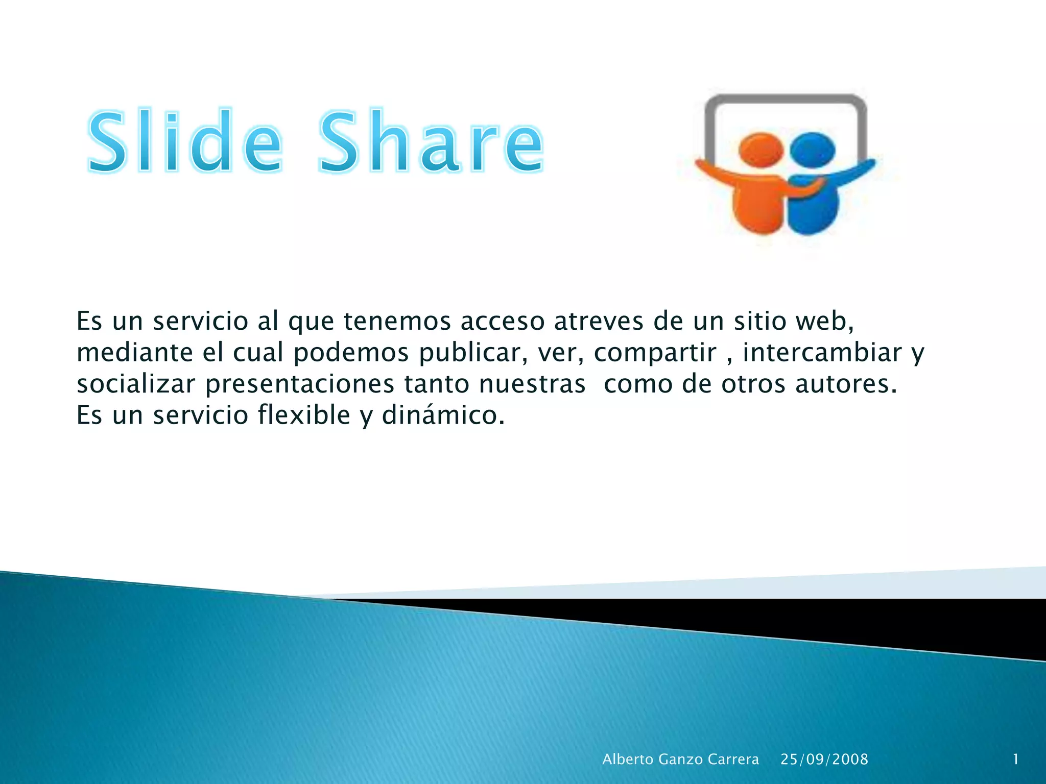 SlideShare es un servicio web que permite a los usuarios publicar, ver, compartir e intercambiar presentaciones de PowerPoint u OpenOffice de forma gratuita. Los usuarios pueden subir archivos de hasta 20 MB y acceder a presentaciones almacenadas en formato Flash para verlas en línea. SlideShare es útil para compartir presentaciones en la red sin necesidad de adjuntar archivos pesados en correos electrónicos.