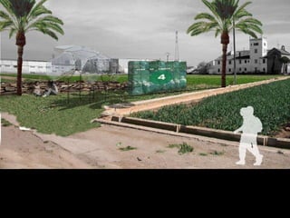 El documento describe una huerta ubicada al este de la Ronda Este en Alboraya, Valencia. La huerta se riega con agua de los ríos Turia y Carraixet y produce hortalizas, melones, tabaco, maíz y chufa. En la huerta hay restos de casas y alquerías moriscas del siglo XIV, así como la ermita de San Cristóbal. Actualmente la huerta está rodeada por el polígono industrial Mar al norte y los límites de Alboraya al oeste. El documento propone varias intervenciones en