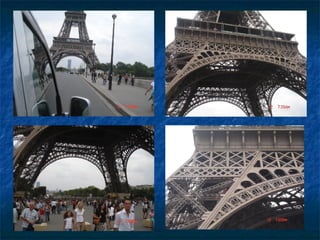 El documento resume un viaje a París para celebrar el cumpleaños número 50. Incluye fotos de lugares emblemáticos como el Montmartre, la Basílica del Sagrado Corazón, el Moulin Rouge y el Louvre, así como imágenes de la pareja visitando estos lugares. También menciona una cena de cumpleaños en un restaurante con vista panorámica de la ciudad.