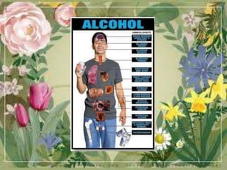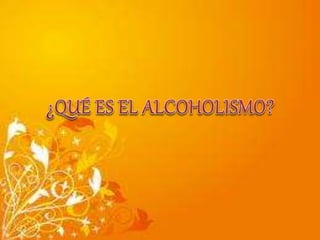 El documento describe la dependencia al alcohol y sus consecuencias. Existen dos tipos principales de alcoholismo. El alcoholismo genera una fuerte necesidad de consumir alcohol y falta de control sobre la cantidad ingerida, lo que lleva a problemas de salud, trabajo y familia. El abuso crónico del alcohol puede causar daños graves en el hígado, el corazón y el cerebro, así como consecuencias sociales como la pérdida del empleo y las relaciones.