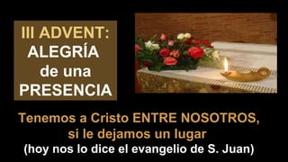 El documento resume el evangelio de Juan sobre Juan el Bautista testificando sobre Jesús. Juan el Bautista dice que no es el Mesías ni Elías ni el Profeta, sino solo un vocero que prepara el camino para el verdadero Mesías que está entre la gente aunque no lo reconocen. Juan el Bautista señala a Jesús como aquel a quien no es digno de desatarle la correa de la sandalia y la verdadera luz y palabra de Dios.