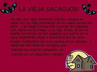 La vieja Cranbu fue quemada y cegada por su hija Elisa después de una pelea. Cranbu se vengó matando a Elisa y a otros con su serrucho, arrancando y comiendo sus ojos para encontrar los de Elisa. Ahora se dice que Cranbu vaga cada noche buscando más ojos.