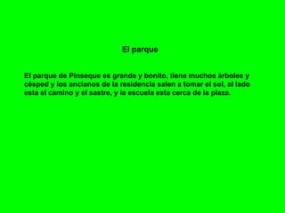 El documento describe tres lugares del pueblo de Artiaguila: el parque de Pinseque, que es grande y tiene árboles, césped y ancianos; la ermita de Peraman, una pequeña ermita con la Virgen de la Ola a la que los vecinos van en romería el primer domingo de mayo; y el puente Jubo, un puente construido hace años sobre un canal para que las caballerías pudieran cruzar y trabajar los campos.