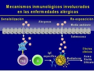 La hipersensibilidad inmediata (tipo I) o alergia es una reacción inmunitaria rápida mediada por la unión de IgE a los mastocitos. Cuando se expone al antígeno, los mastocitos liberan mediadores que causan síntomas locales o sistémicos. La anafilaxia sistémica es una emergencia potencialmente mortal caracterizada por shock, edema y dificultad respiratoria. El tratamiento incluye evitar el alérgeno, antihistamínicos y corticoesteroides.