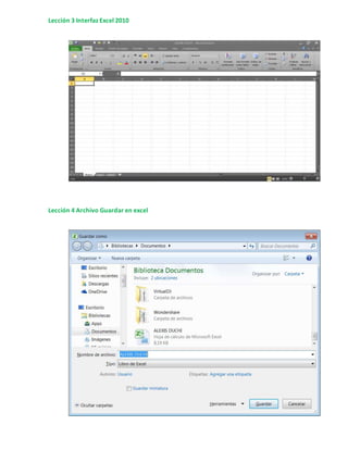 Este documento presenta un resumen de 36 lecciones sobre el uso de Microsoft Excel. Las lecciones cubren temas como abrir Excel, navegar entre celdas, filas y columnas, formato de celdas, inserción de fórmulas y funciones, generación de gráficos, cortar y pegar, y creación de organigramas. El documento proporciona una guía para aprender las funciones básicas y avanzadas de Excel.