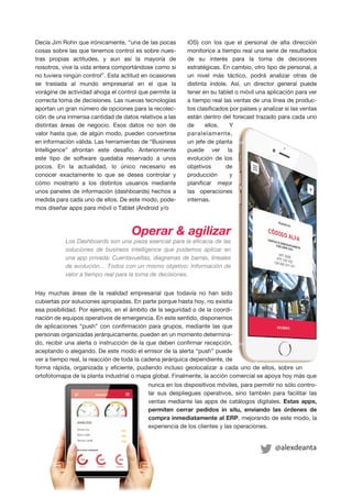 El documento describe cómo las aplicaciones móviles pueden usarse como herramientas competitivas en el mercado internacional. Las empresas ahora pueden crear aplicaciones personalizadas que permitan a los empleados mejorar procesos, tomar decisiones informadas y resolver problemas de manera más rápida e inmediata. Además, las aplicaciones pueden ayudar a las empresas a lograr una cultura de innovación compartida al permitir que los empleados envíen ideas y comentarios.