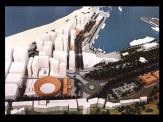 El documento detalla el plan especial para el puerto de Alban, desarrollado por varias firmas de arquitectura y propiedades entre 1998 y 2008. Incluye proyectos específicos como el Muelle 1 y el diseño del palmeral de las sorpresas. Se menciona la participación de arquitectos destacados y diferentes fechas de progreso en los proyectos.